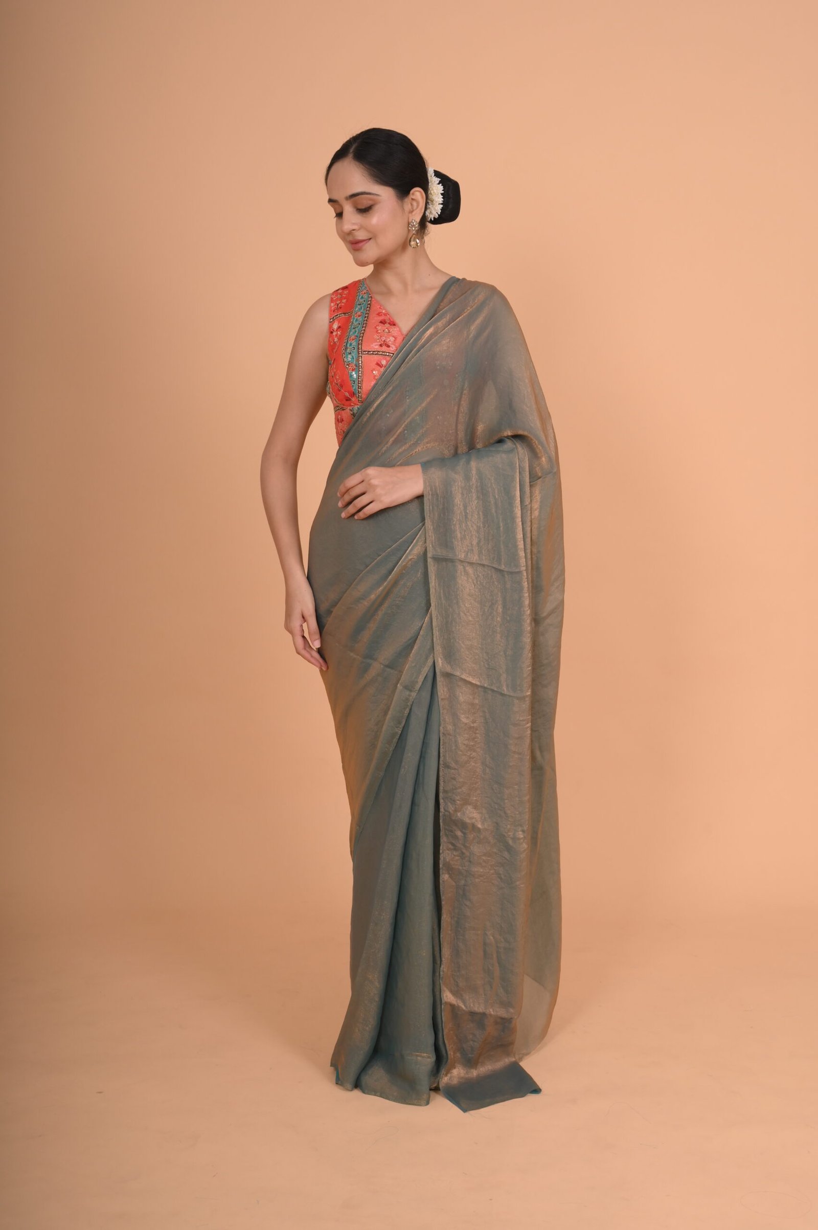 | Lining | Pure cotton | Saree Fabric & Colour | COSMOS SILK & COPPER BLUE |