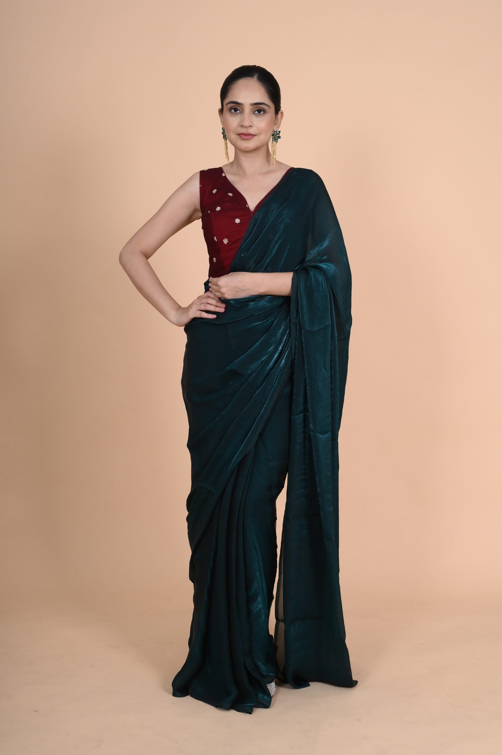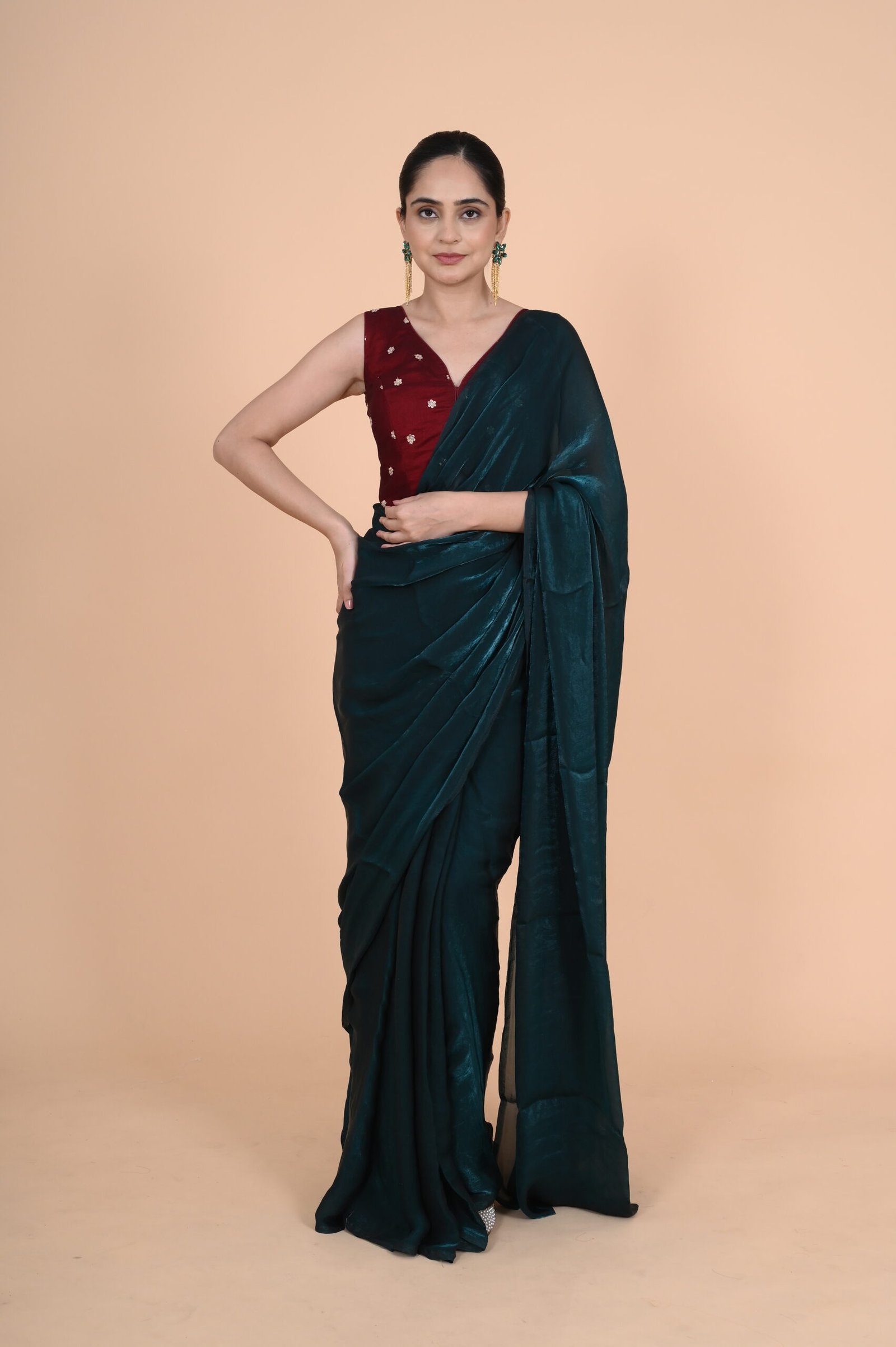 | Lining | Pure cotton | Saree Fabric & Colour | COSMOS SILK & PINE GREEN |