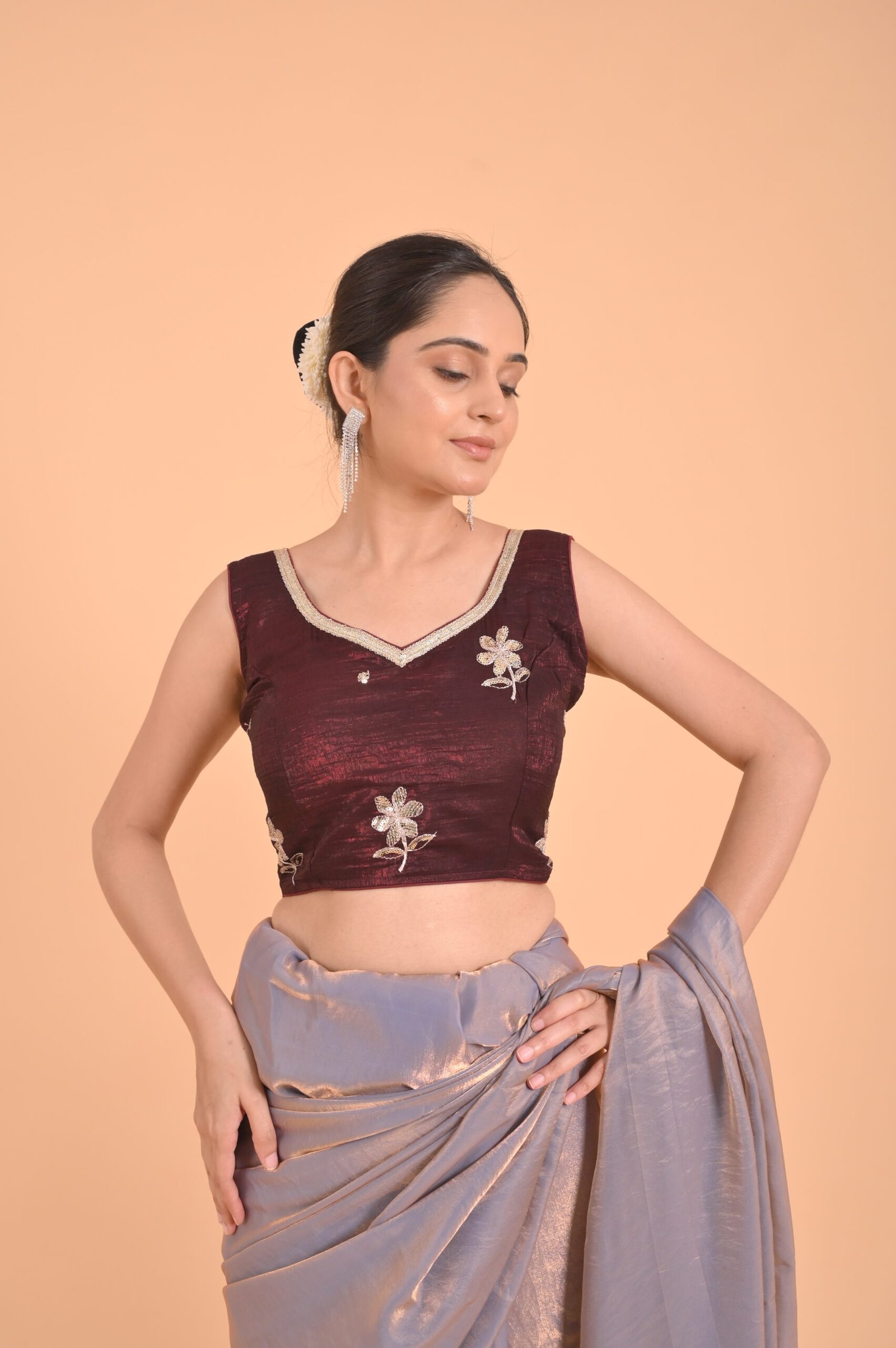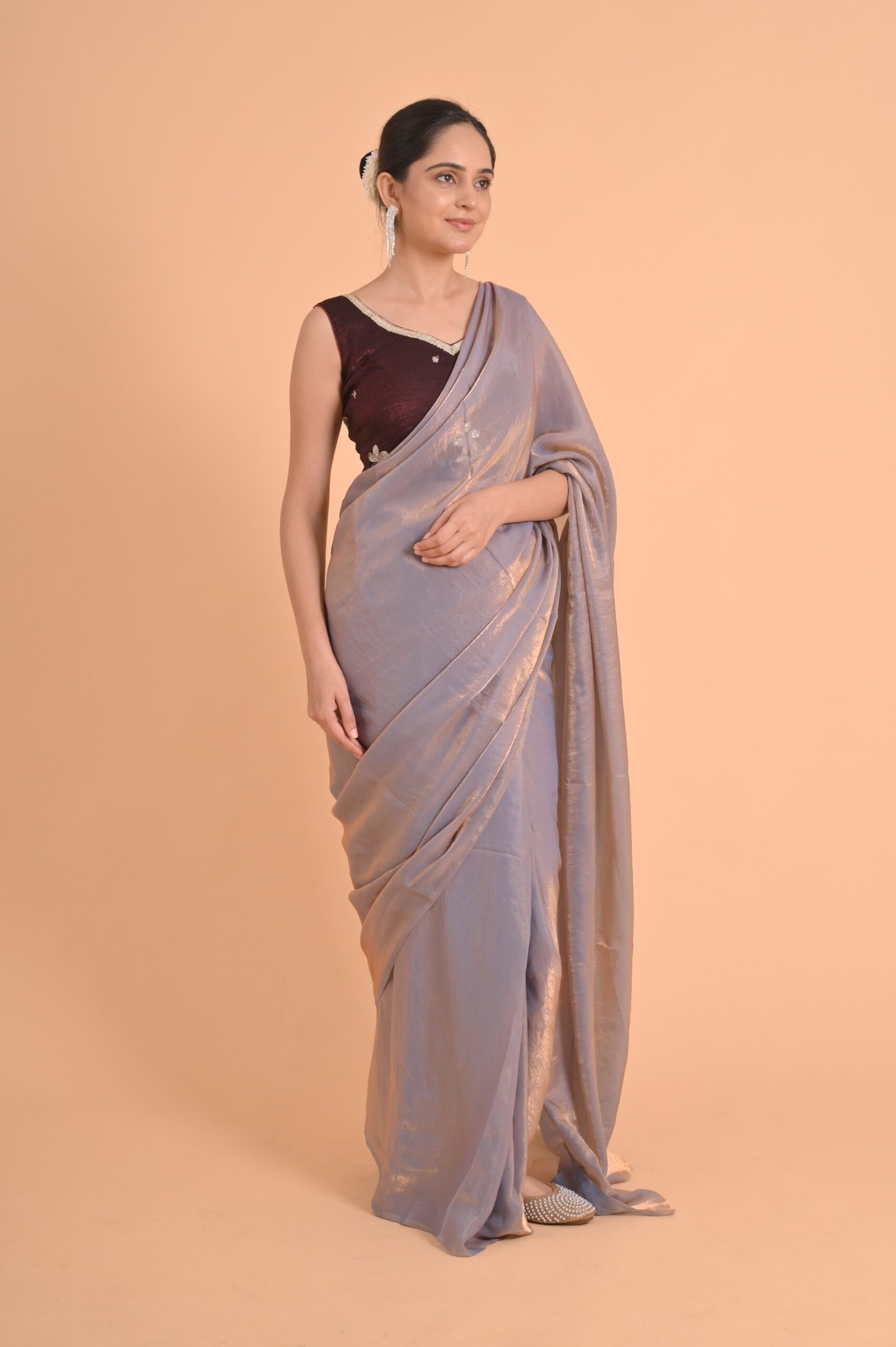 Lining Pure cotton Saree Fabric & Colour fendy silk & DUSKY LEVENDER